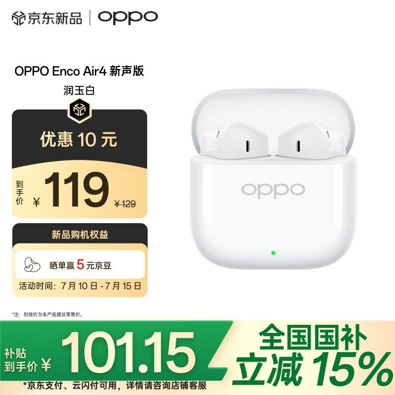 OPPO Enco Air4 新声版真无线耳机限时特惠