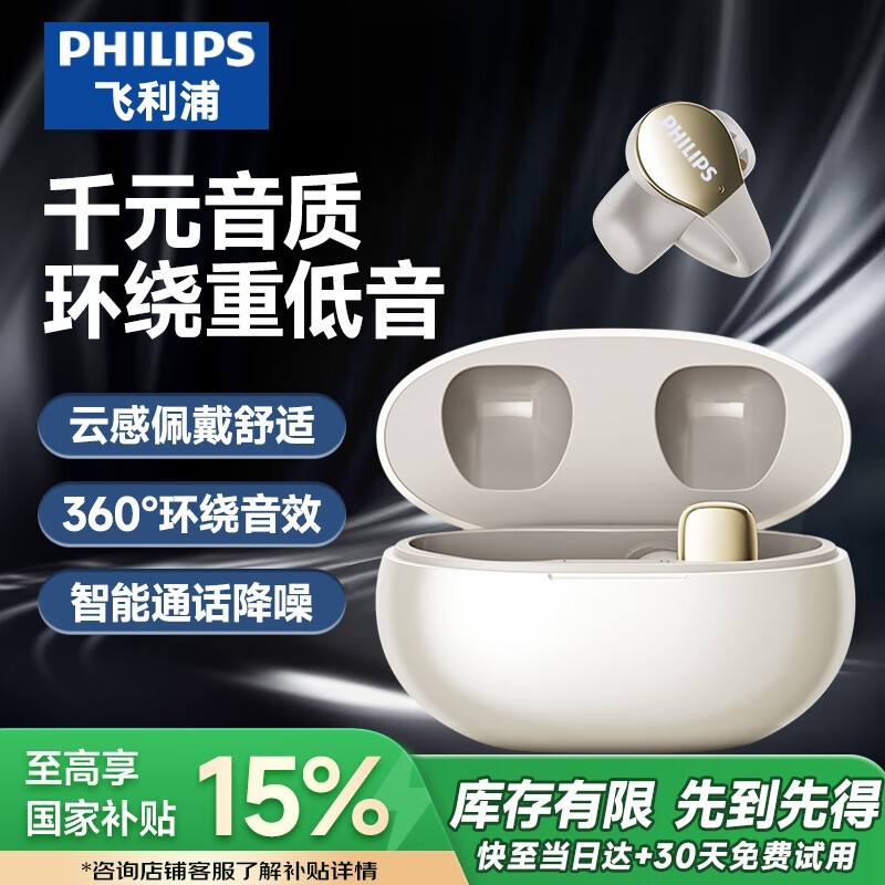 飞利浦TAT2719耳夹式真无线蓝牙耳机限时特惠!