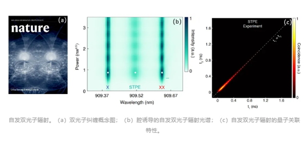 该团队提出了一种全新的“腔诱导自发双光子辐射”方案,在国际上首次实现了与单光子辐射强度相当的自发双光子辐射,并成功研发出保真度高达99.4%的按需触发式新型微纳量子纠缠光源。