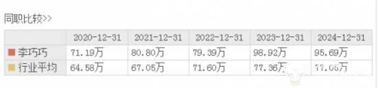 据过往财报数据显示,近五年李巧巧的薪酬始终处于百万元以下,与同职级副总经理陈淑美形成显著差距。