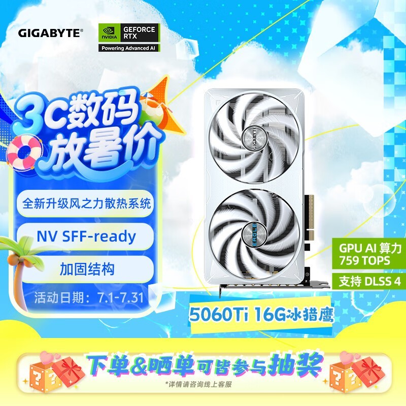 技嘉RTX 5060 Ti 16G显卡京东优惠价3939元