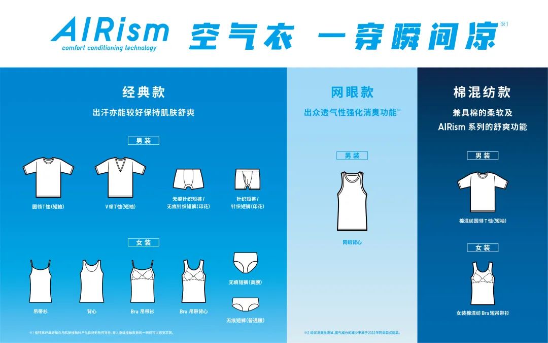 这些细节之中,正是AIRism空气衣真正的价值所在:它不是冷冰冰的技术堆砌,而是从一开始就围绕“人”出发的设计理念,在每一项实际使用中,提升穿着者的舒适感和安全感。13年来,AIRism空气衣不断进化,但从未脱离生活场景一步。不一味强调参数、功能,而是在每一个真实的、不舒服的夏天里,替你把“贴身”这件小事认真做好。