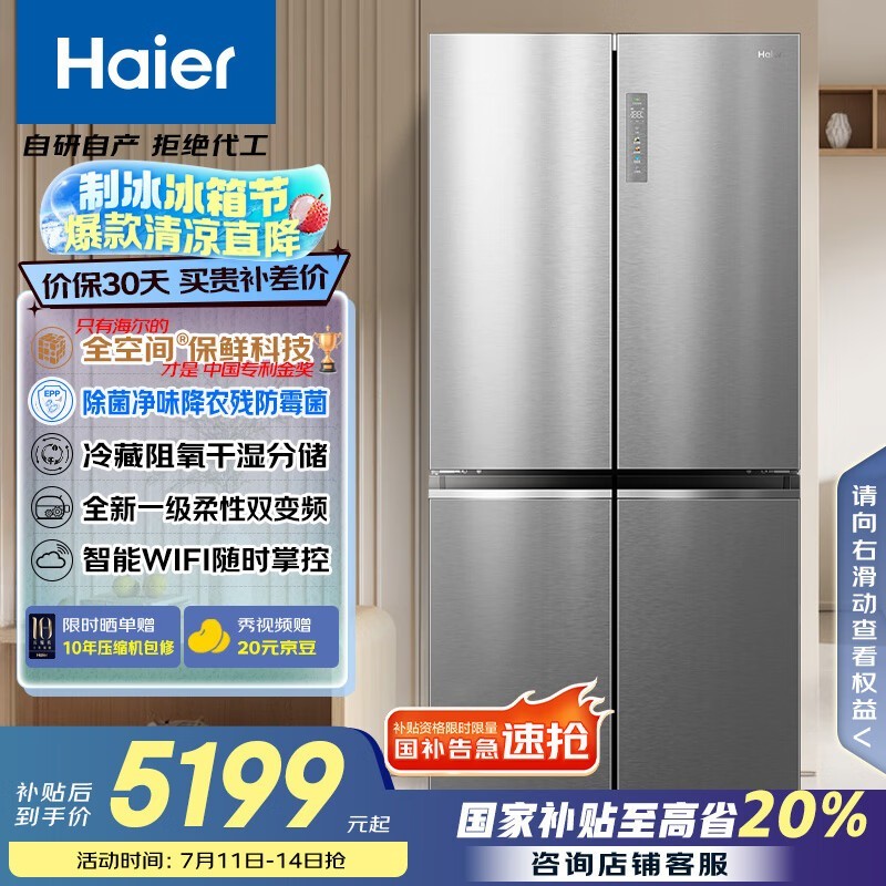 海尔657L风冷多门冰箱 京东价5199元