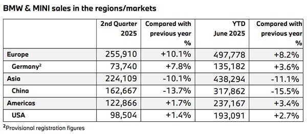 今年二季度,宝马集团全球汽车(包括旗下品牌宝马、MINI和劳斯莱斯)销量达到621,271辆,同比微增0.4%。