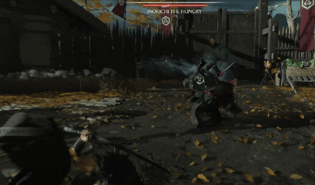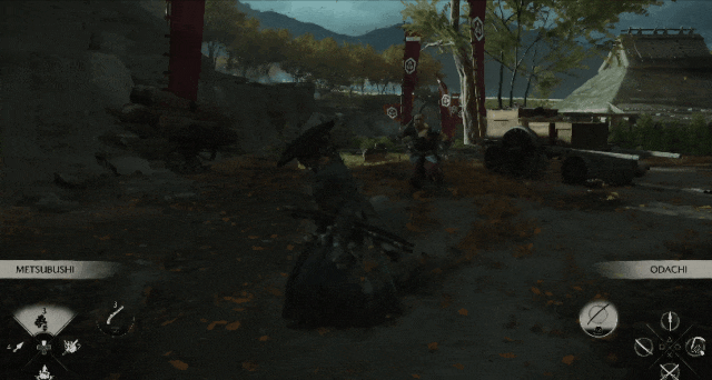 和《刺客信条:影》的设计有些许相似战斗系统也变得更为“自由”。《羊蹄山之魂》目前至少有五种近战武器,包括武士刀、长枪、锁镰、大太刀、双刀,以及远程射击的弓箭与火绳枪,每种武器都有自己的一套升级体系。
