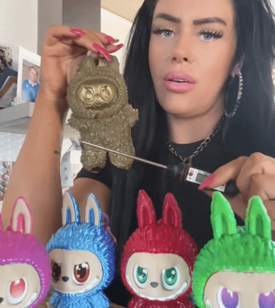 "我拥有全球唯一的24K黄金Labubu,"她说道,"这是真正的24K黄金打造的Labubu,重200克,我们花了2万英镑(约合人民币18.5万元)熔铸金条制作而成。"
