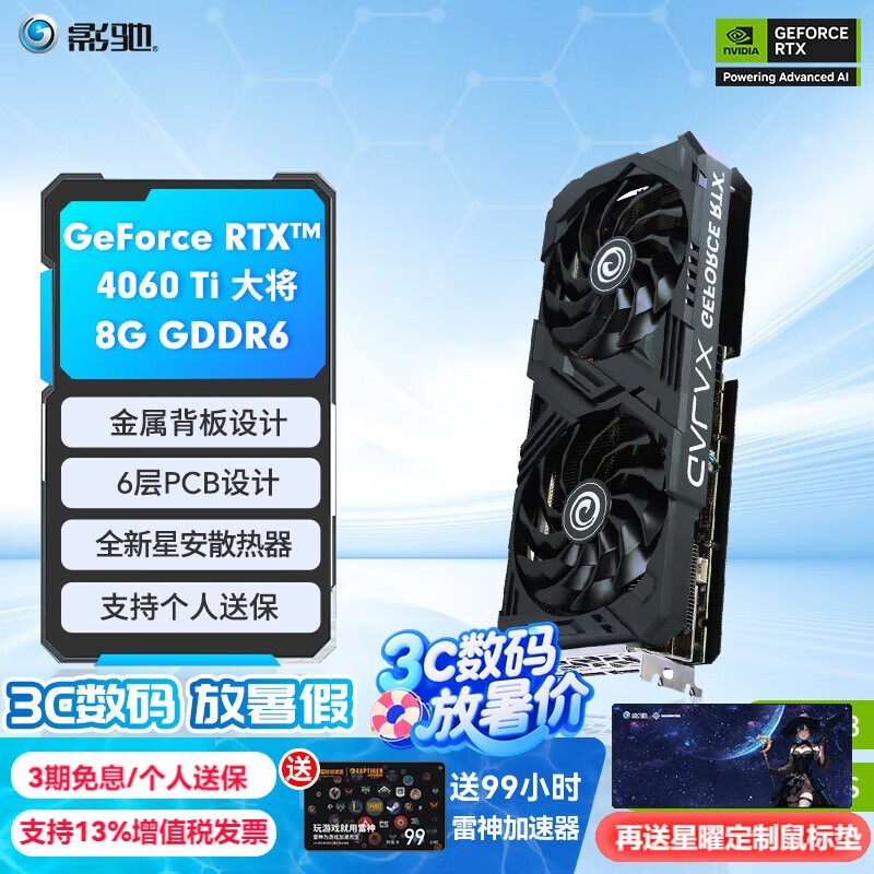影驰RTX4060Ti大将显卡促销:2699元限时特惠