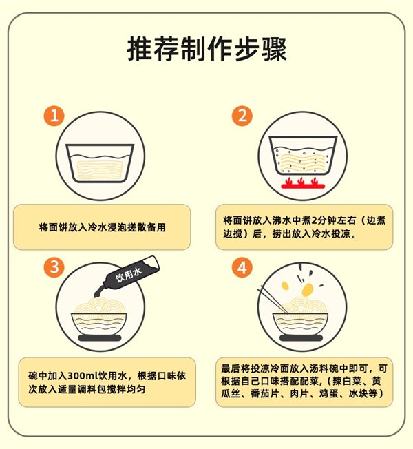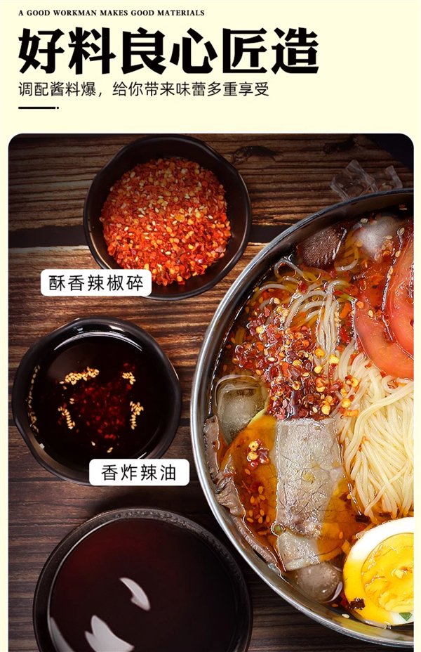 * 含冷面汤、辣椒等 3 包料,图片中的牛肉、鸡蛋等需要自己添加哦~