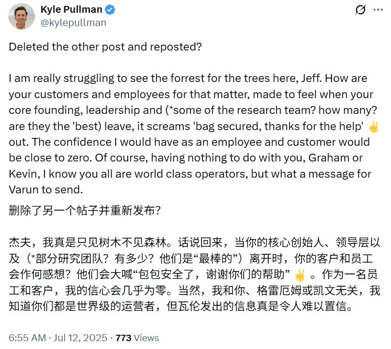 也就是说,Windsurf 将继续作为一家独立创业公司运营,同时其团队的关键成员将加入谷歌 —— 对于没加入谷歌 DeepMind 的 Windsurf 员工,不仅一点好处也没有,高管和技术核心还都跑路了。