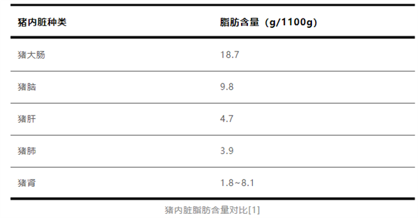 由表可以看出,猪脑的脂肪含量是猪肺和猪肝的 2 倍以上。因此,它在猪内脏里算是高脂选手。对于正在控制体重和减肥的人群,应当少吃。