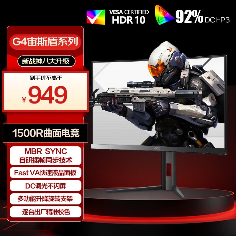 AOC宙斯盾C27G4曲面显示器限时特惠806元