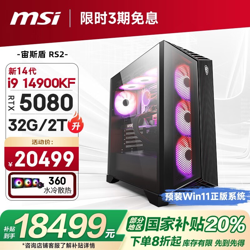 微星宙斯盾RS2电竞主机限时特惠18499元