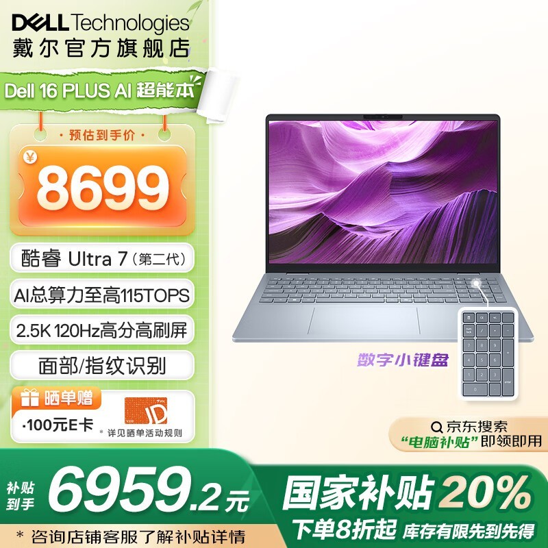 戴尔16 Plus二代酷睿Ultra版冰川银限时优惠