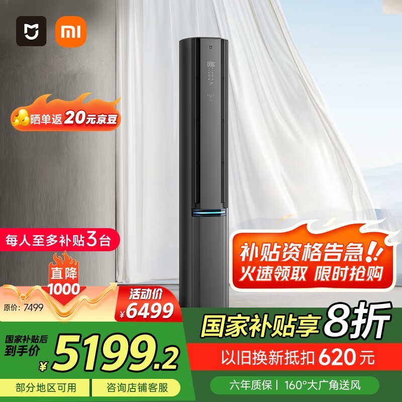 米家自然风Pro空调72LW-NA11/M1A1新一级能效立柜式3匹双缸变频空调