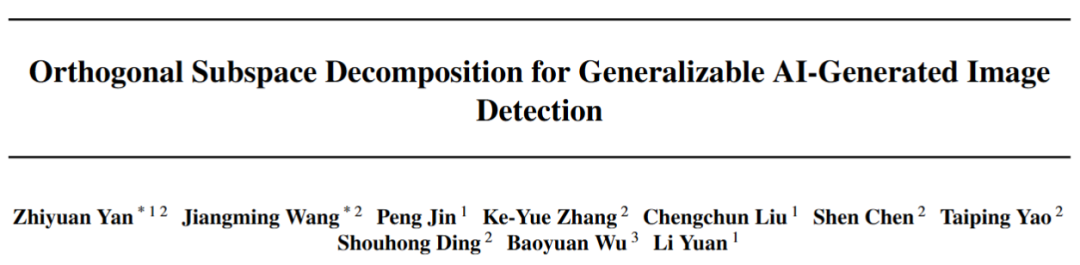 近日,北京大学与腾讯优图实验室等机构的研究人员针对这一泛化难题做了一些深层次的探究,研究表明 AI 生成图像检测任务远比 「真假二分类 」复杂!这里基于正交子空间的分解对该挑战提出了一种新的解决思路,实现了检测模型从 「记忆式背诵」 到 「理解式泛化」 的跨越,显著提升 AI 生成图像检测的泛化能力,具有理论深度与实践价值的双重突破。论文被 ICML2025 接收为 Oral (TOP ~1%)。