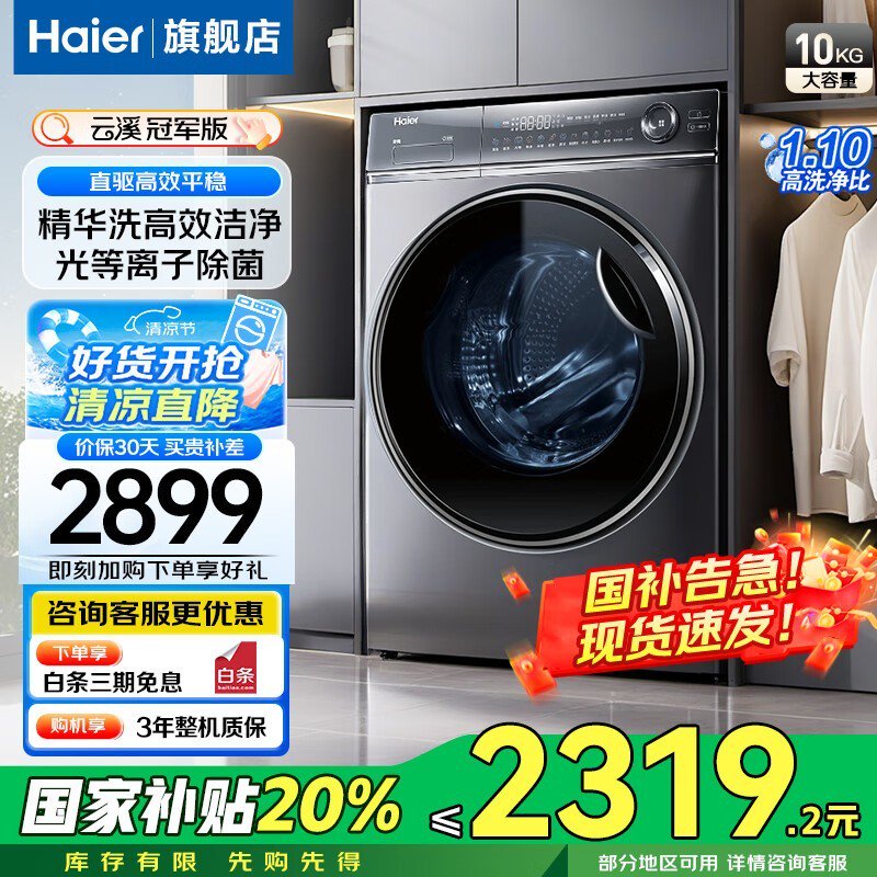 海尔云溪冠军版滚筒洗衣机促销:直降3700元,洗烘一体高效省水