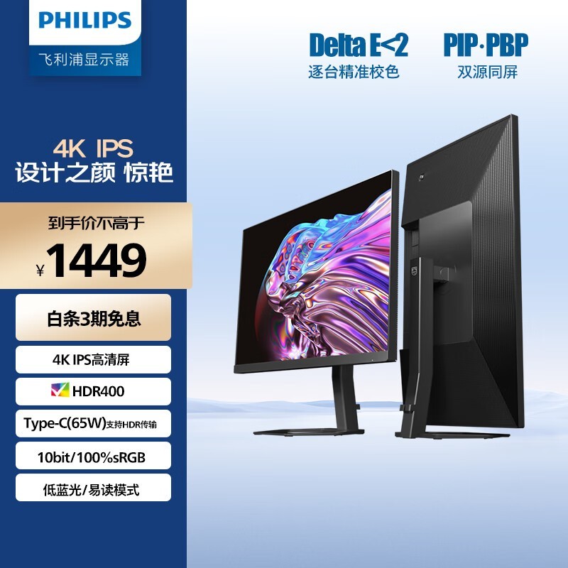 飞利浦27英寸4K IPS显示器限时优惠1231元