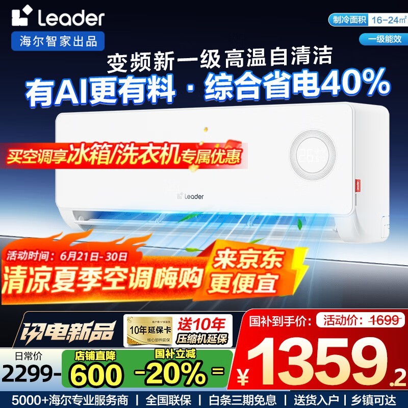 海尔智家1.5匹挂机空调新一级能效节能静音变频家用京东特惠