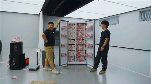 照片中还透露了一个有趣的冷知识:容量700升的家用大冰箱,大约能装下4500万现金。也就是说,要装下一亿元,至少需要两台这样的冰箱才能勉强容纳。