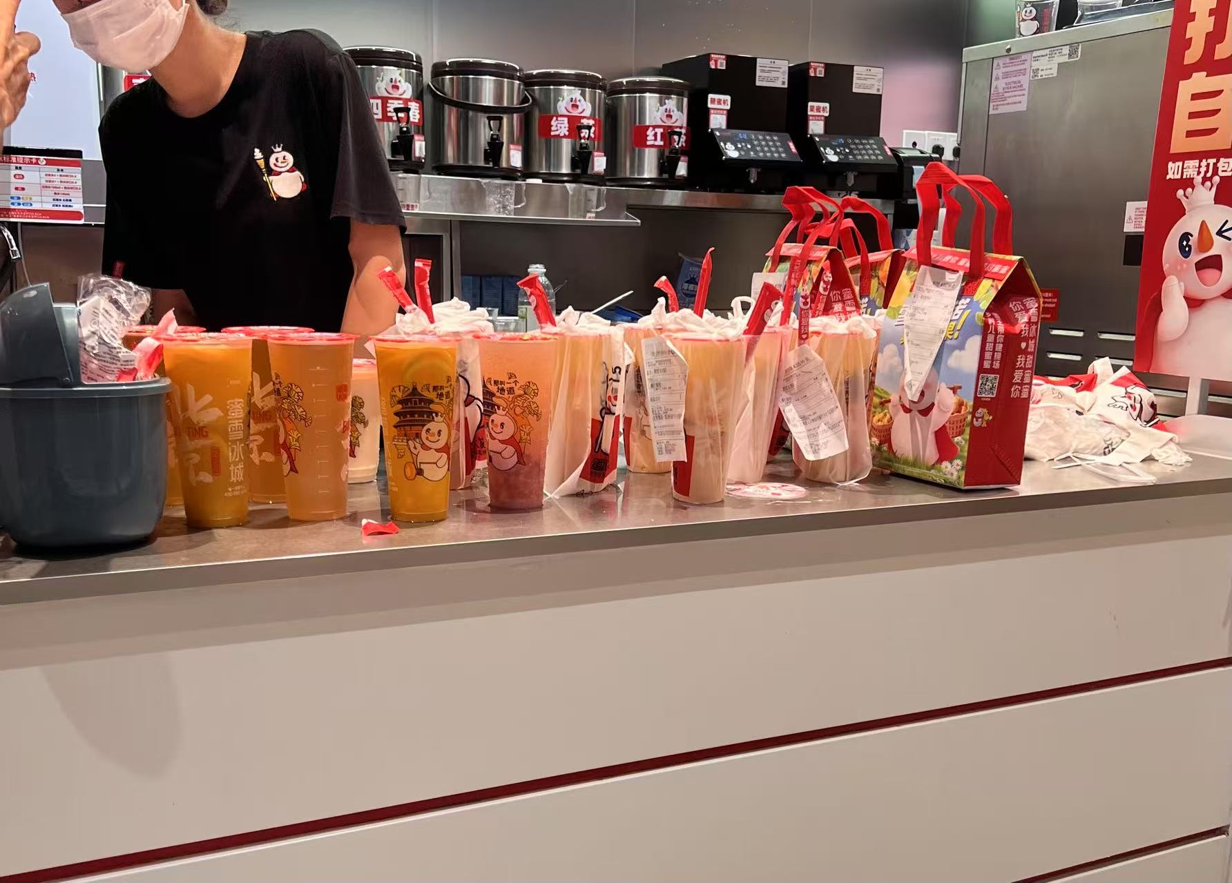 不是每一家蜜雪冰城门店都出现爆单,另一家蜜雪冰城的店员王晓(化名)对第一财经表示,“今天还好不怎么爆,比工作日忙一点。”这位店员表示,7月12日美团0元购的订单较多,其他两个平台和日常一样。