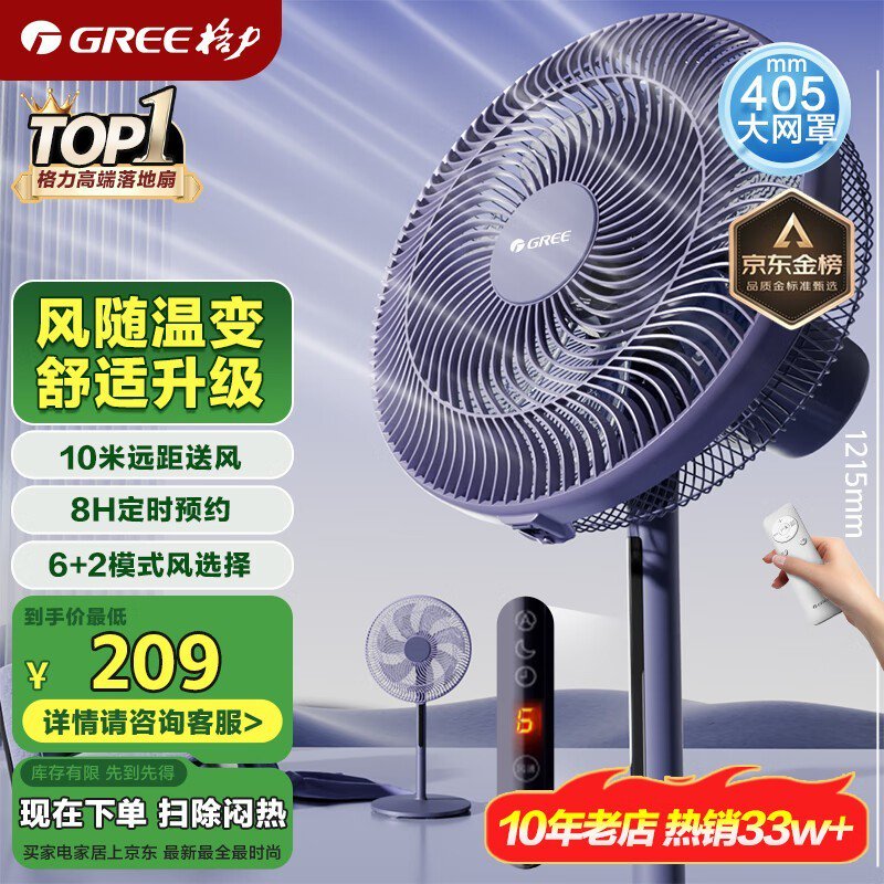 格力FD-35X66Bh7落地扇紫色款限时特惠151元