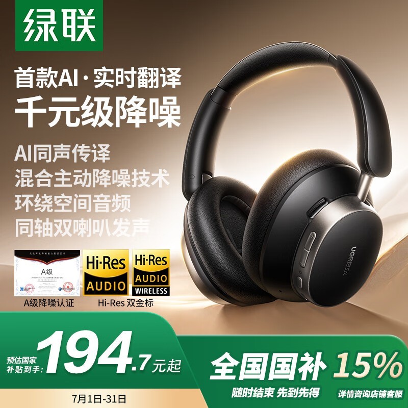 绿联HiTune Max6头戴耳机48dB降噪超长续航京东特惠