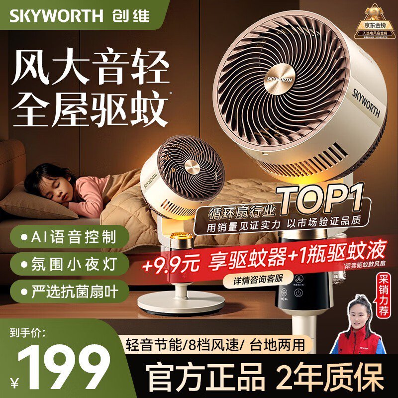 创维冰岛驱蚊空气循环扇2025款Q522白咖色限时特惠152元