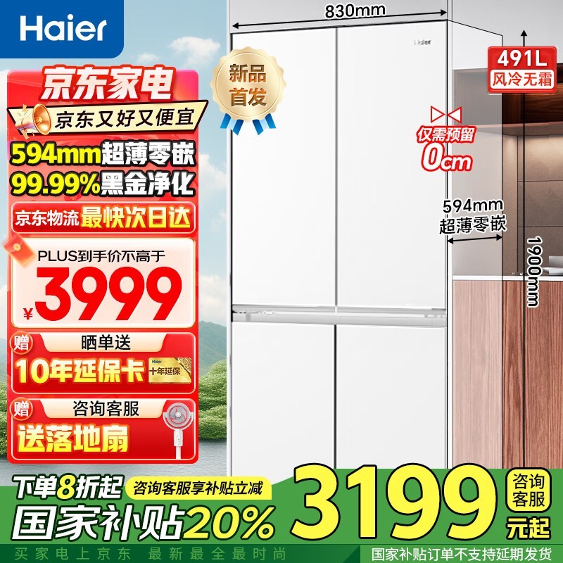 海尔Haier405L风冷无霜双变频冰箱现价3039元
