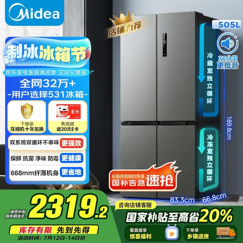美的505L风冷十字冰箱苍穹灰钜惠!