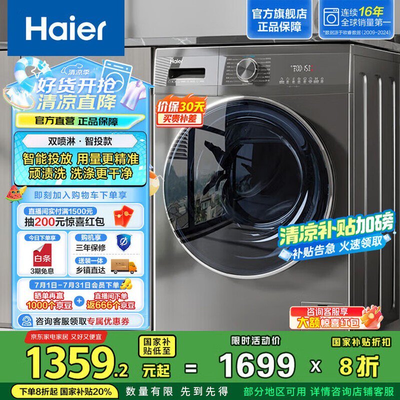 海尔初色滚筒洗衣机EG100MATE55大容量除菌节能