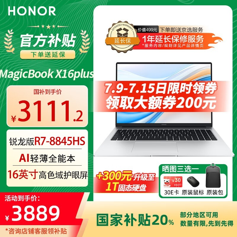 荣耀MagicBook X16 Plus锐龙版限时特惠3111元