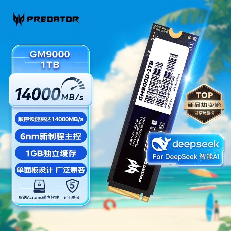 宏碁掠夺者神舆GM9000固态硬盘1TB PCIe5.0高速游戏神器限时特惠799元