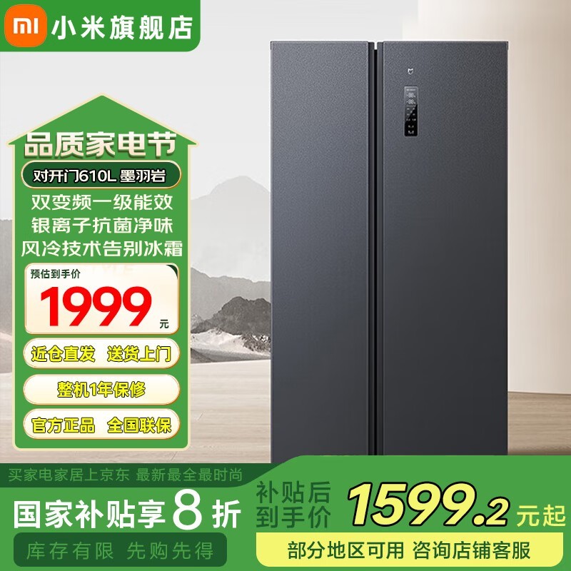 米家610L风冷对开门冰箱限时特惠1455元