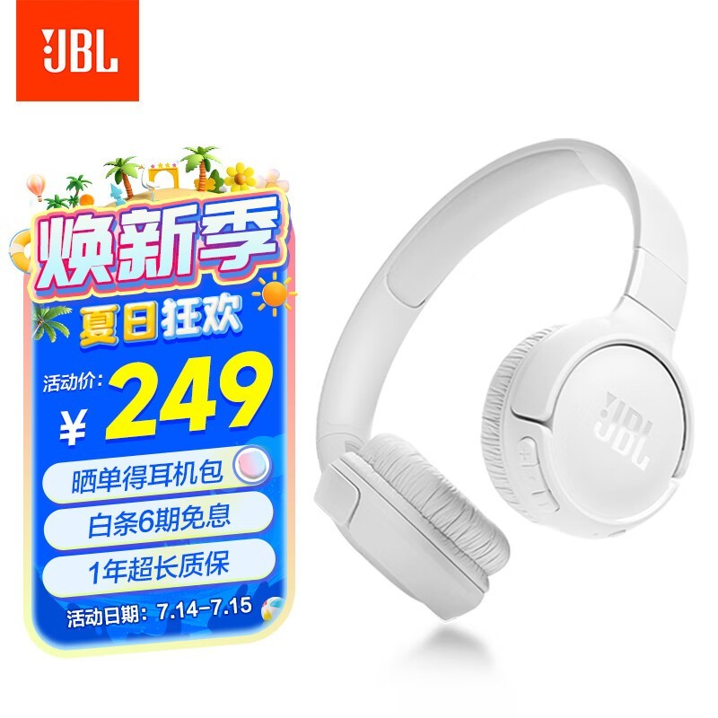 JBL TUNE 520BT 耳机直降37元,211元限时抢购
