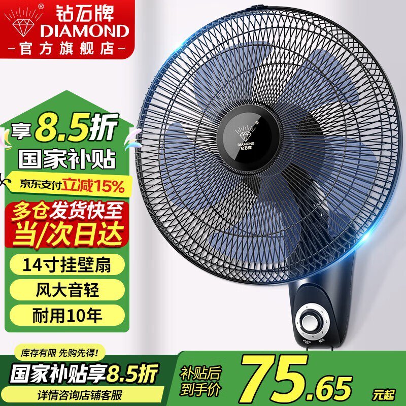 钻石表DIAMOND壁挂风扇14寸,省空间静音设计,现京东特价89元