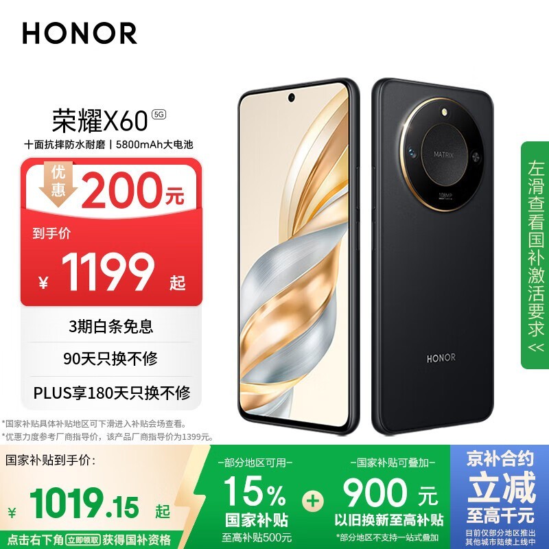 荣耀X60 5G手机限时特惠1199元
