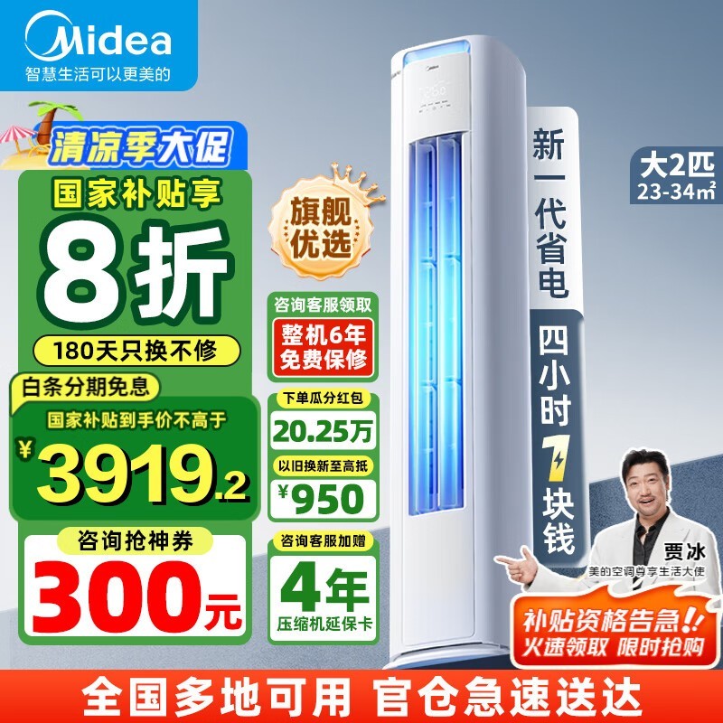 美的空调柜机锐静风酷智行风尊大功率节能变频圆柱立式客厅空调