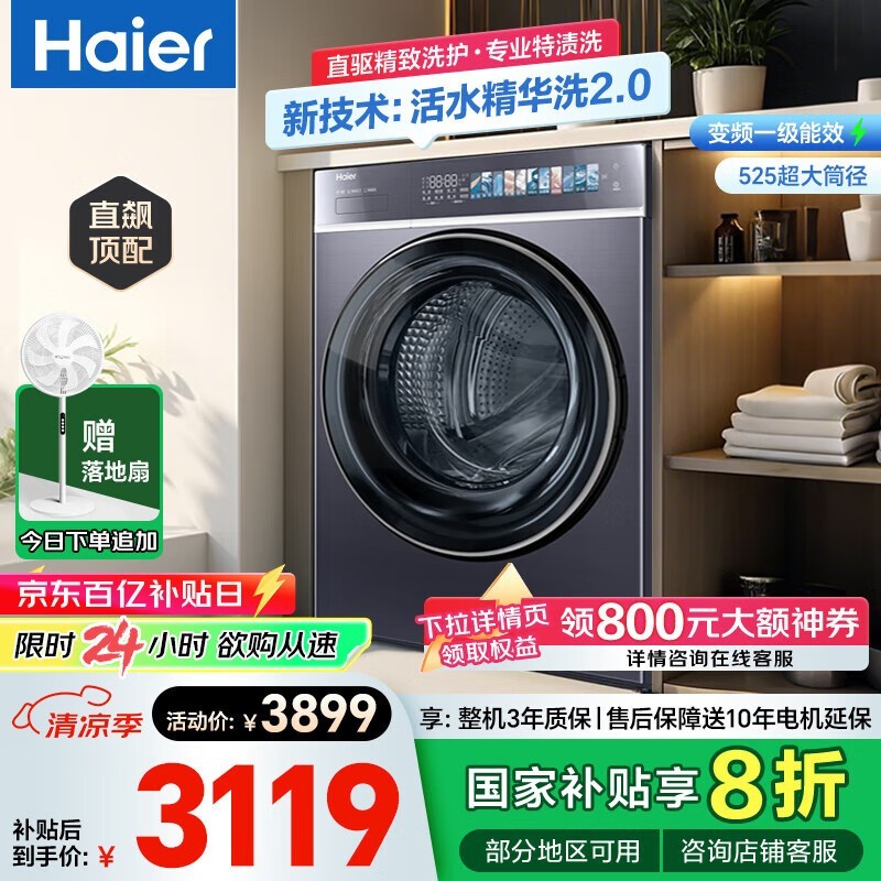 海尔云溪4滚筒洗衣机促销:直驱变频、智能护衣,限时特惠2687元