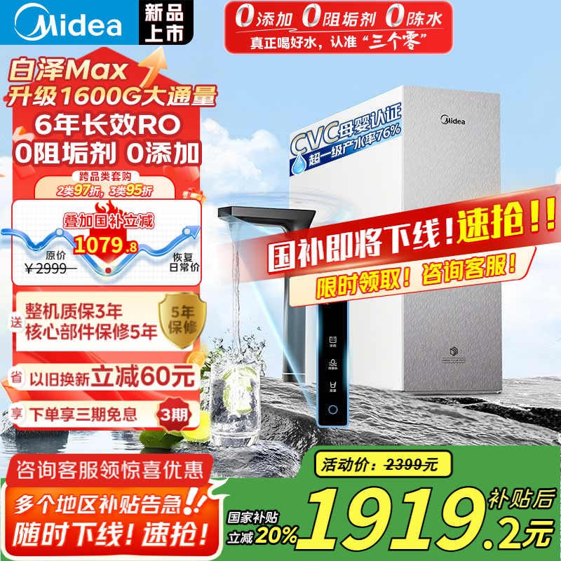 美的净白泽1600G净水器限时特惠