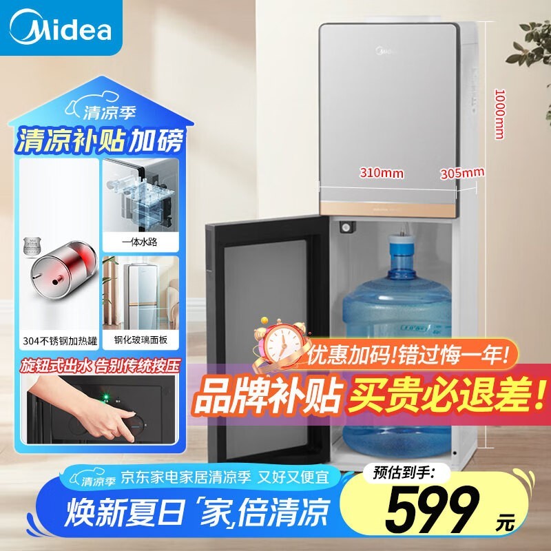 美的YR1611S-X立式温热饮水机钛钢灰限时特惠509元