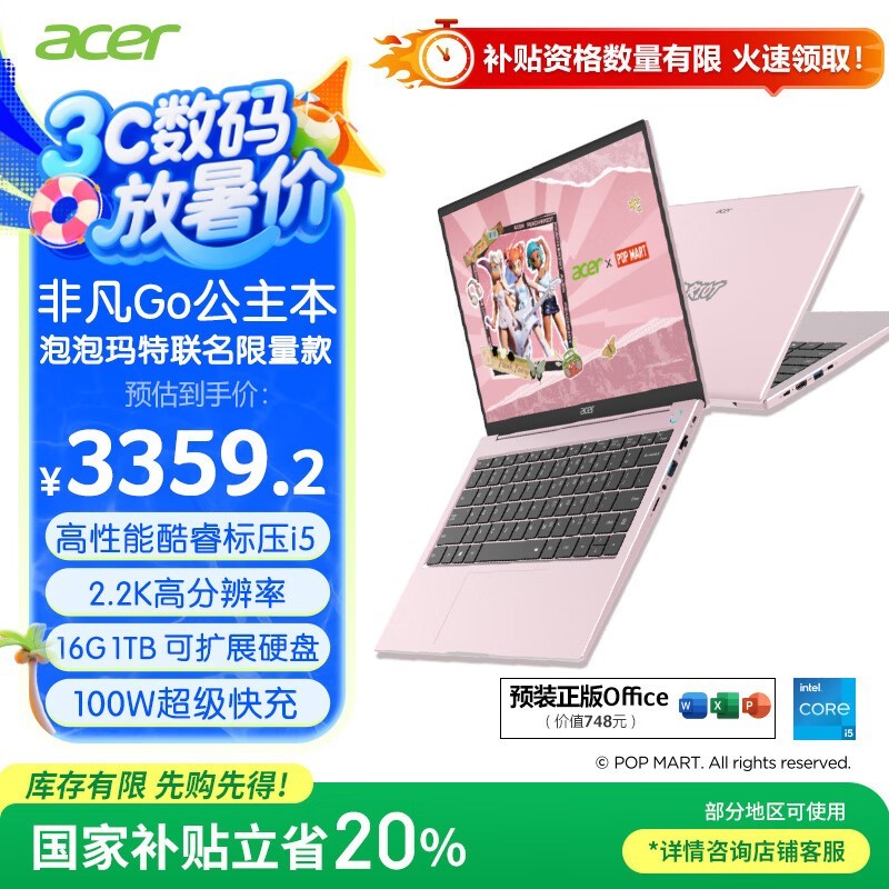 宏碁非凡Go公主本泡泡玛特联名款限时特惠