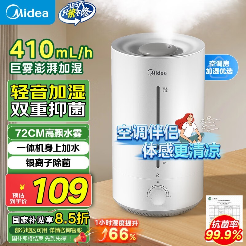 美的CS-3VWL加湿器大雾量410mL/h澎湃加湿