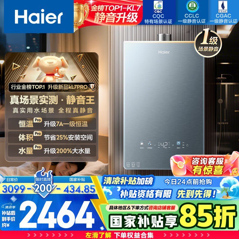 海尔16升燃气热水器限时特惠仅1855元