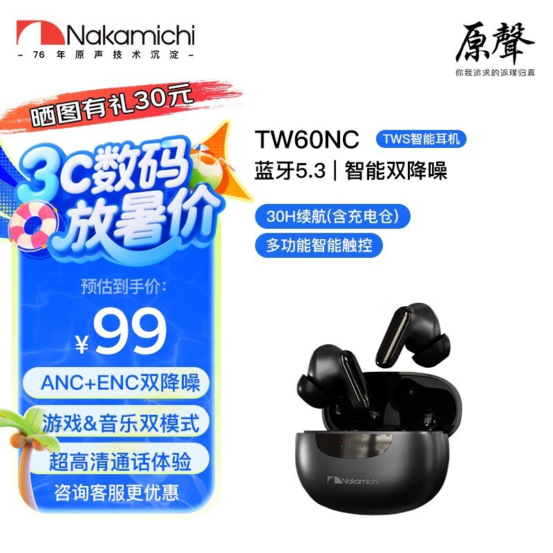 NAKAMICHI中道TW60NC蓝牙耳机京东大促