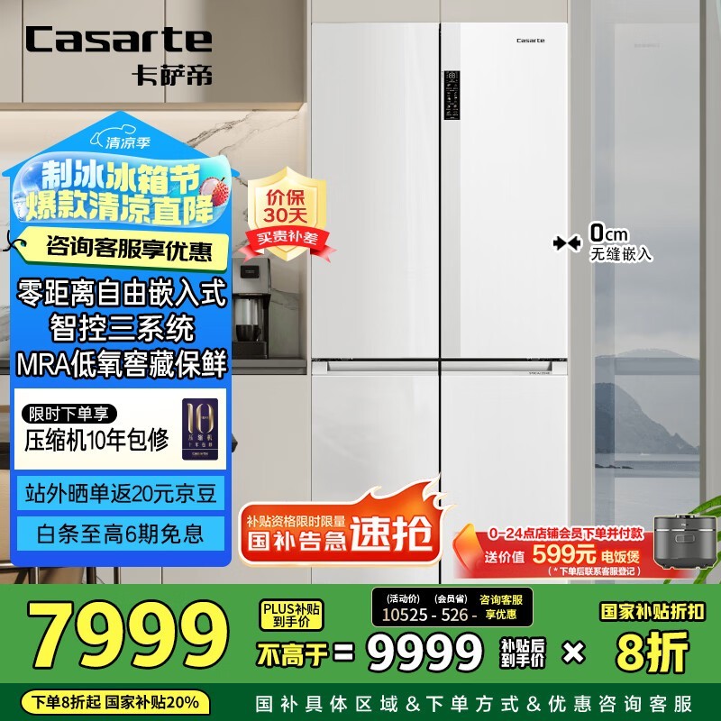 卡萨帝纯白冰箱551升大容量风冷十字对开低价7498元