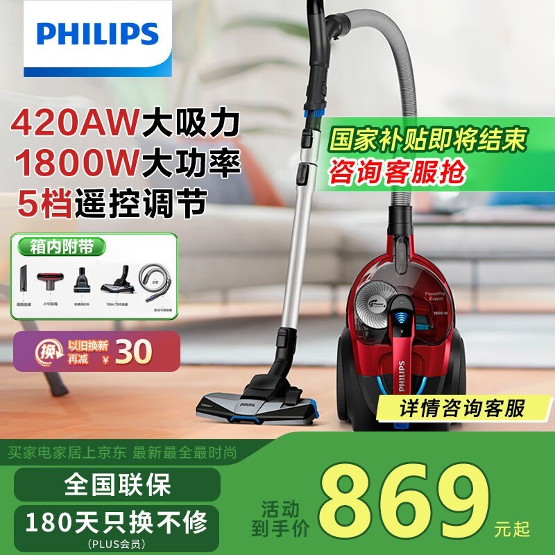 飞利浦卧式吸尘器FC9735 三合一吸头强劲吸力