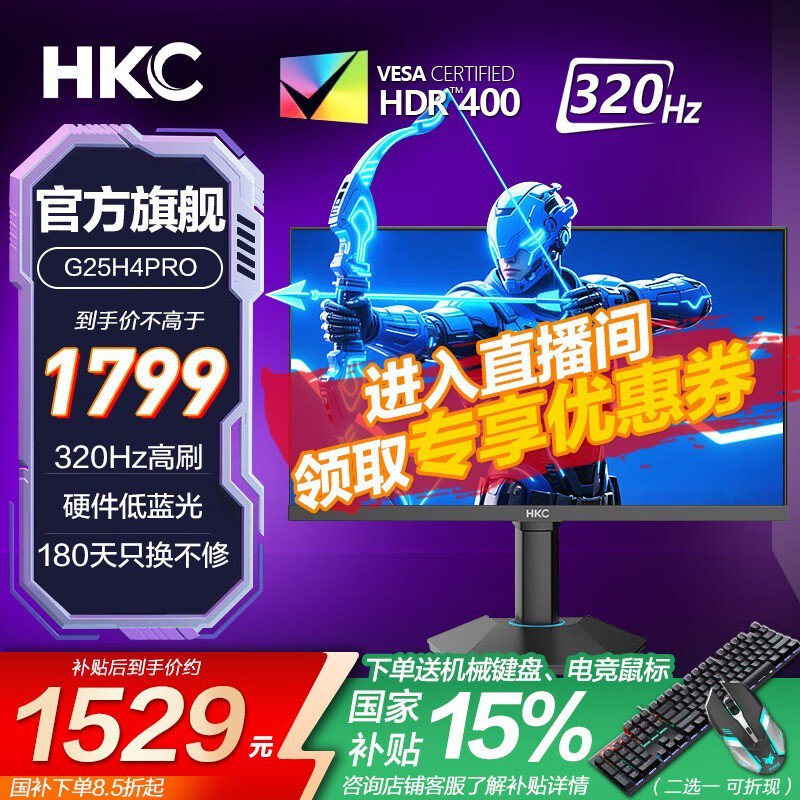 HKC 24.5英寸2K 320Hz电竞显示器京东优惠