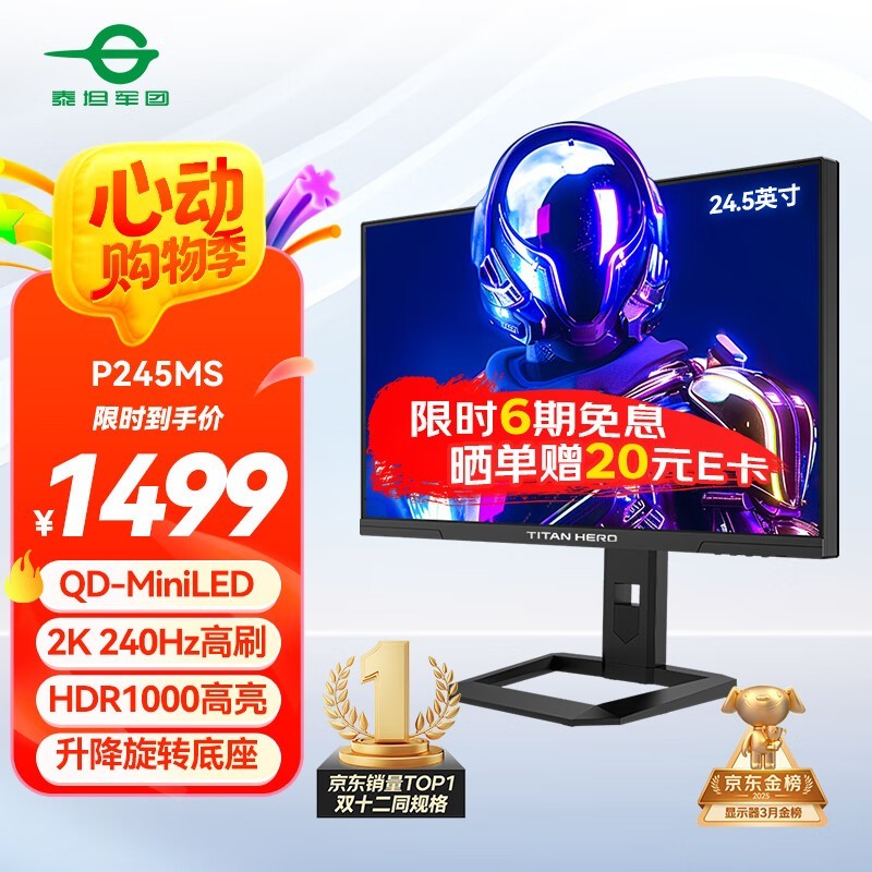 泰坦军团P245MS电竞显示器限时特惠1247元