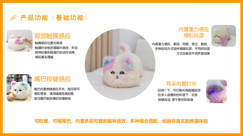 抱抱喵自2022年上市以来,全渠道销量已突破60万只,其软萌的外表、灵动的眨眼和摇尾巴动作,迅速俘获了无数家庭的心。趣巢玩具在此基础上,为抱抱喵引入了AI大模型,利用最新自研技术,多模态交互引擎,多感官认知阵列,升级为Ai抱抱喵,开心的时候会摇尾,困惑的时候会眨眼,会喵喵卖萌的全新萌宠,许多家长反馈:"这款玩具不仅能陪伴孩子,还能在养成互动中培养语言能力和情商,真正做到了寓教于乐。"