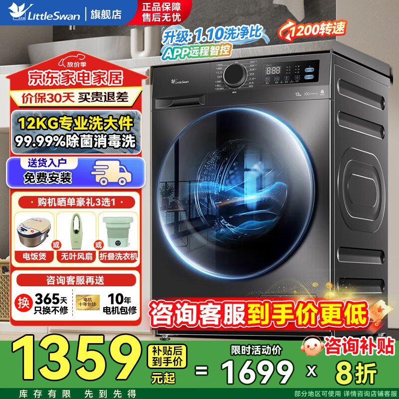 小天鹅滚筒洗衣机大容量节能静音洗护